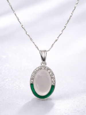 Silver Tone Oval Stone Crystal Pendant Necklace