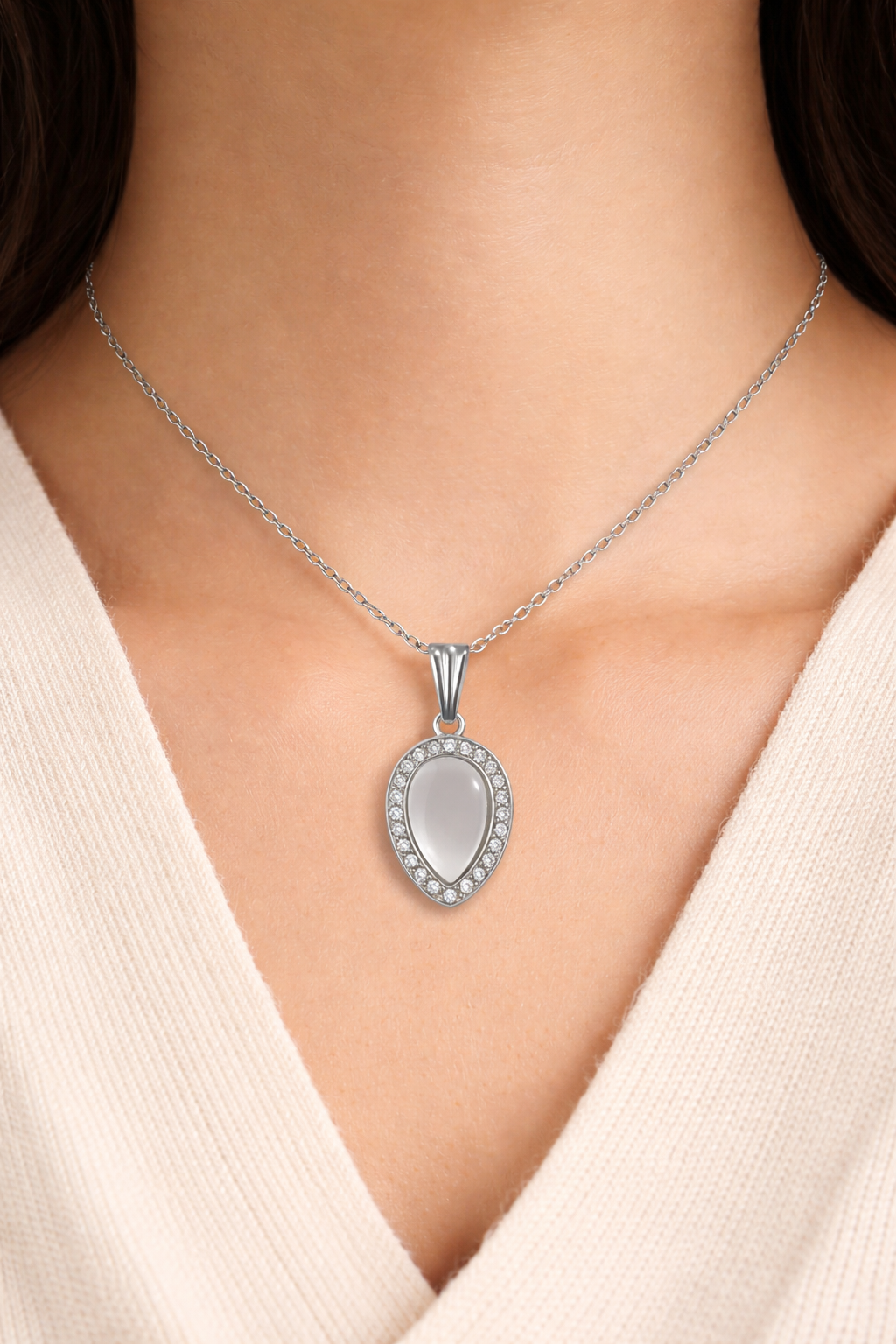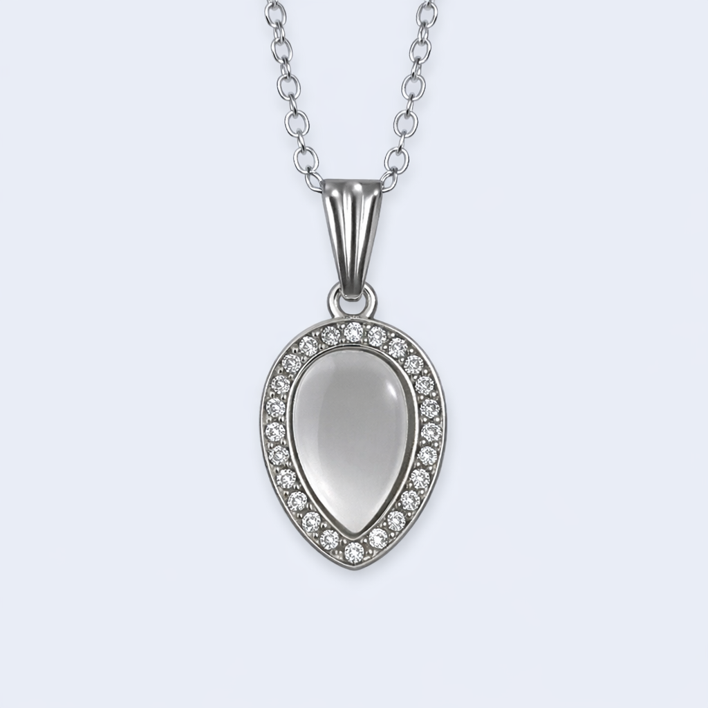 Elegant silver-tone pendant necklace featuring a teardrop crystal design, perfect for everyday and party wear.