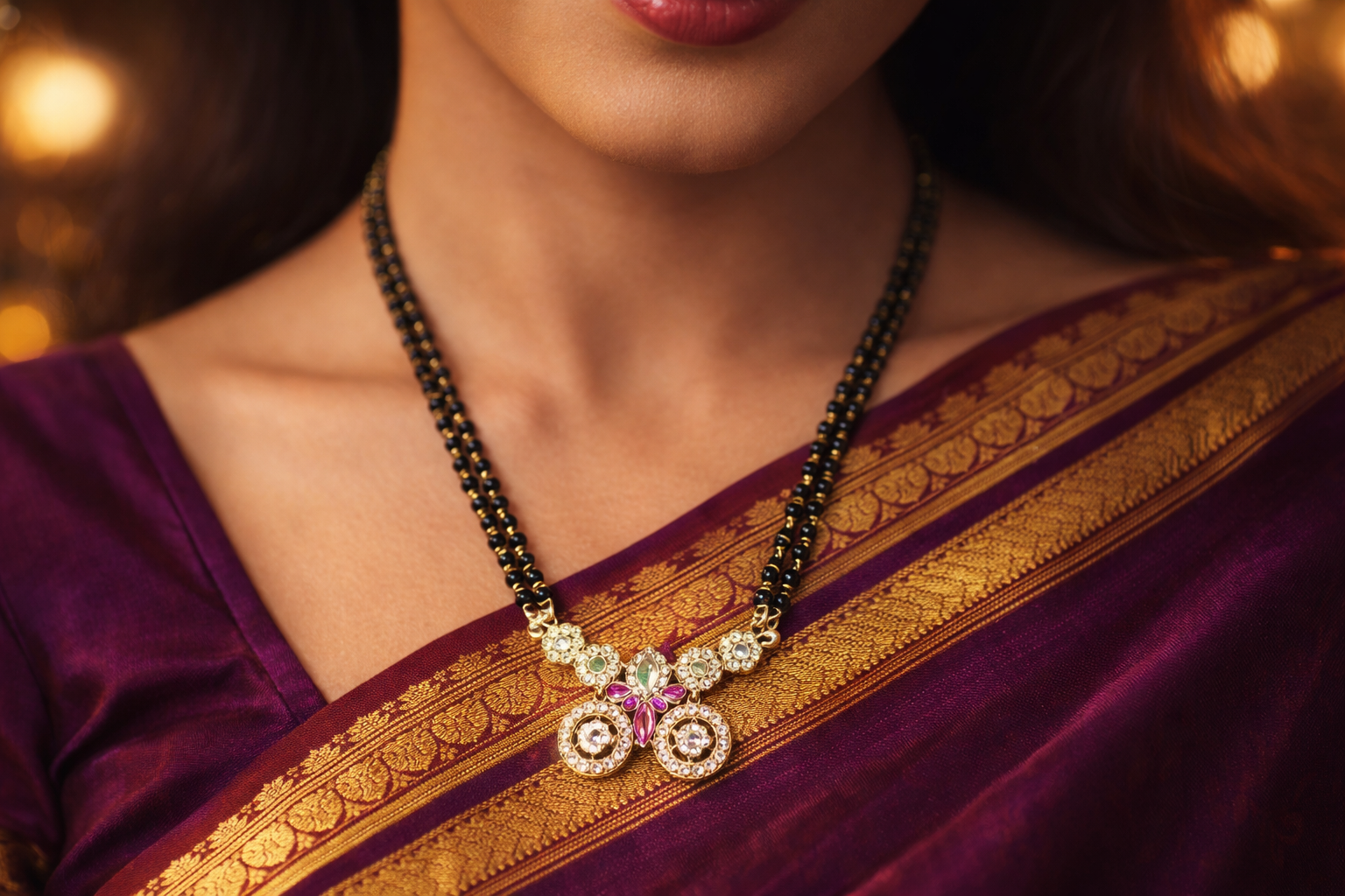 Traditional Paithani-Style Twin Disc Mangalsutra